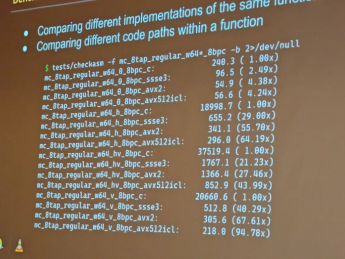 За сравнение, когато фрагмент от десктоп програмата за обработка на мултимедия FFmpeg беше пренаписан на асемблер под AVX-512 инструкции, производителността при някои операции се увеличи до невероятните 94 пъти: